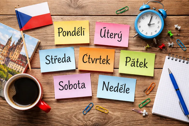 Дни недели — одна из первых тем, с которой сталкиваются русскоязычные люди в Чехии: расписание работы магазинов и врачей, школьные дневники, записи в objednání, объявления в подъезде, разговоры с коллегами («встретимся в среду?»). Если вы уже немного понимаете чешский, но путаетесь в названиях и произношении — эта статья поможет быстро закрыть базу и начать уверенно использовать дни недели в реальной жизни.