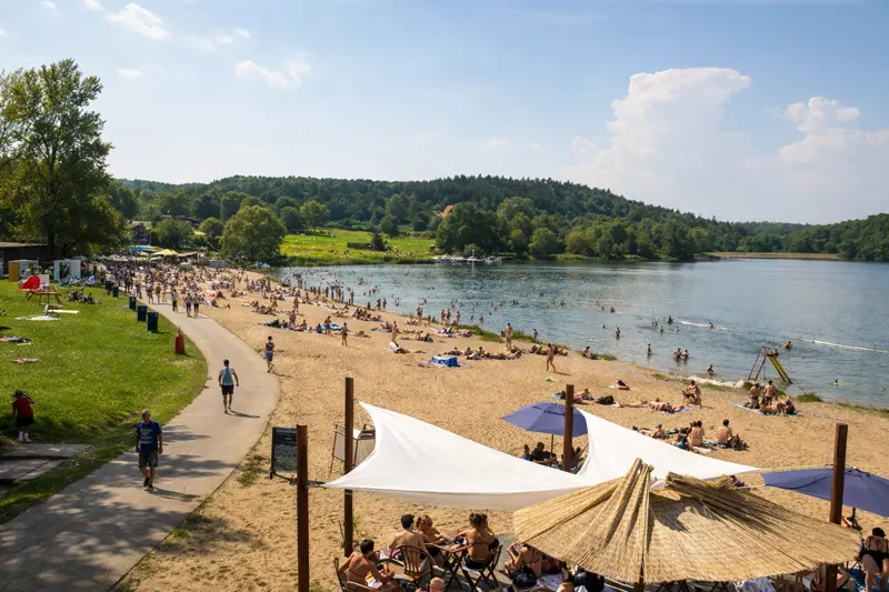 Для жарких выходных это один из самых удачных вариантов рядом с Прагой. Если нужен песок, простор и более «летняя» картинка, Jezero Lhota почти всегда будет в верхней части списка.