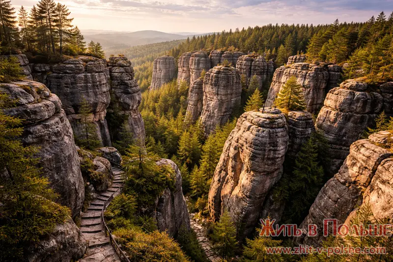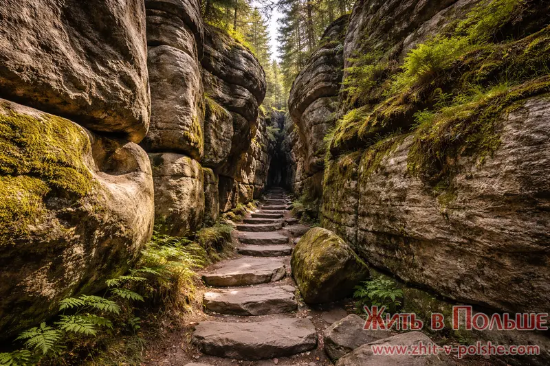 Столовые горы — это «не как у всех». Главная фишка — необычные скальные формы, узкие проходы и каменные коридоры, где прогулка превращается в маленькое приключение. Если вам хочется нестандартной природы — это один из самых ярких вариантов на юге Польши.