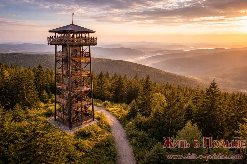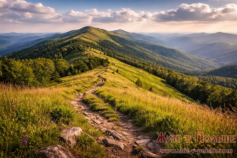 Бескиды часто становятся «входом» в польские горы. Они ниже Татр, мягче по рельефу, зато очень дружелюбны: много троп для новичков, уютные приюты, обзорные башни и маршруты, где можно спокойно идти и разговаривать, а не только считать подъёмы.