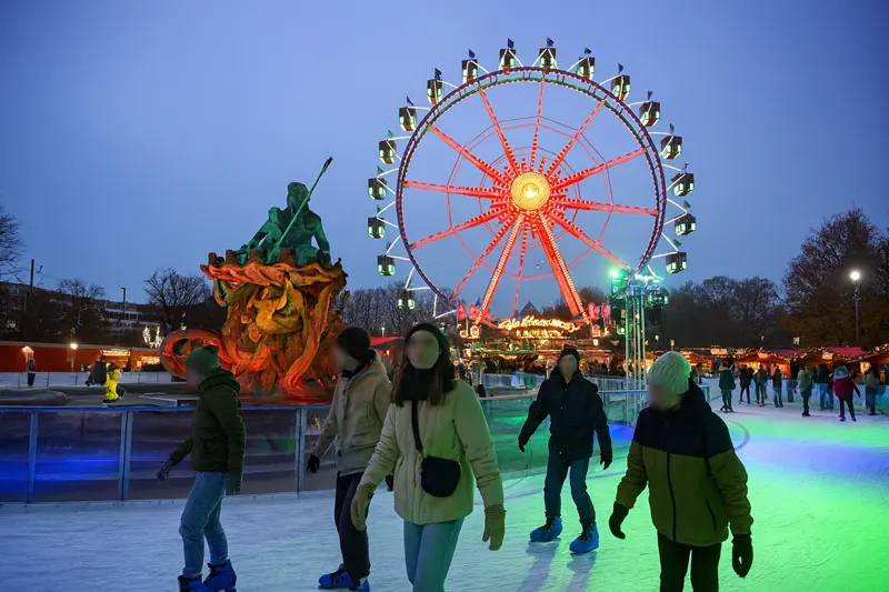 - Другие сезонные площадки: из года в год появляются катки при рождественских ярмарках и городских событиях (у Neptunbrunnen, на больших зимних рынках, в отдельных культурных пространствах). Состав таких локаций меняется каждый сезон, поэтому актуальный список удобно смотреть в сводном разделе «Eisbahnen» на berlin.de.