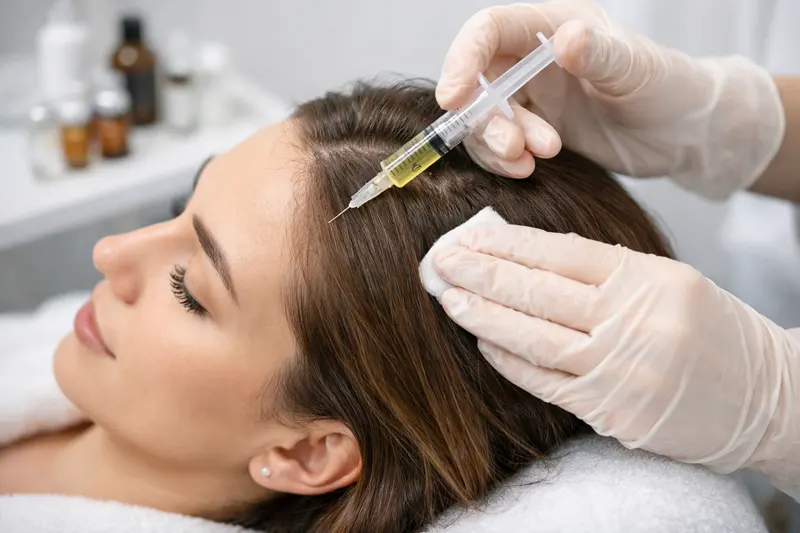 Важный момент: мезотерапия работает, когда фолликулы еще живы. Если на месте выпавших волос кожа гладкая и блестящая, а волосяных луковиц уже нет — процедура бессильна. В таких случаях помогает только пересадка.