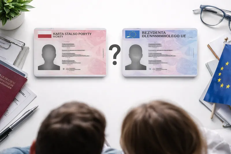 Если у вас есть конкретное основание, например польское происхождение, Карта поляка или брак с гражданином Польши, чаще рассматривают карту сталего побыту. Если же вы идёте по пути длительного легального проживания, стабильной работы и интеграции в Польше, более подходящим вариантом может стать карта долгосрочного резидента ЕС.